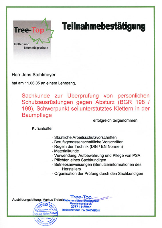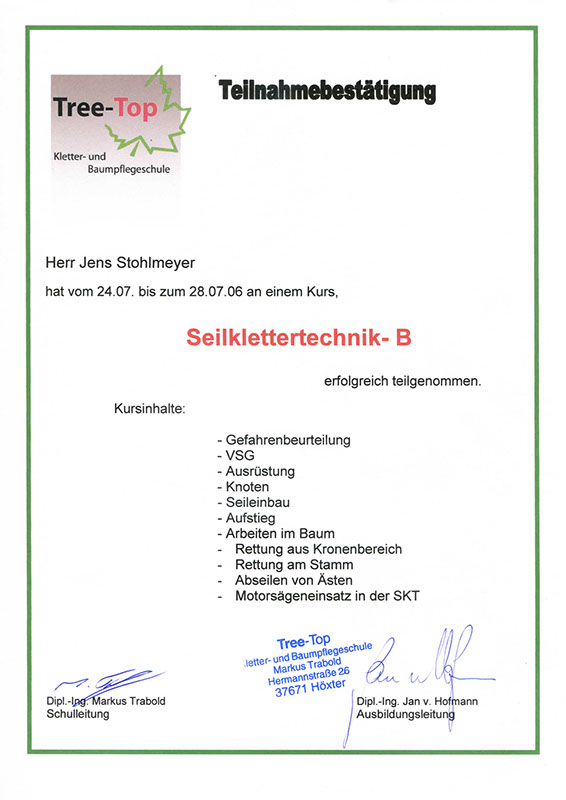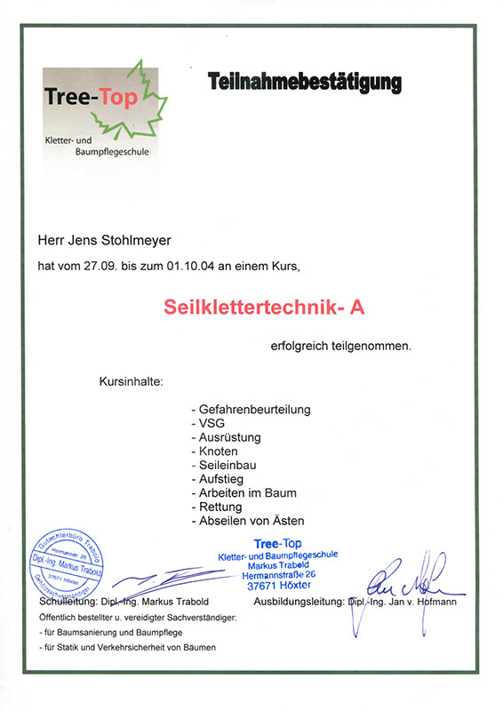 Baumpflege, Fällung und Seilklettertechnik STOHLMEYER